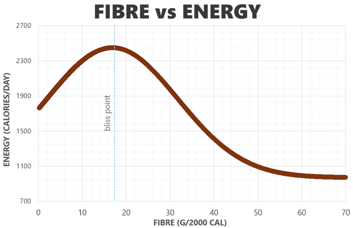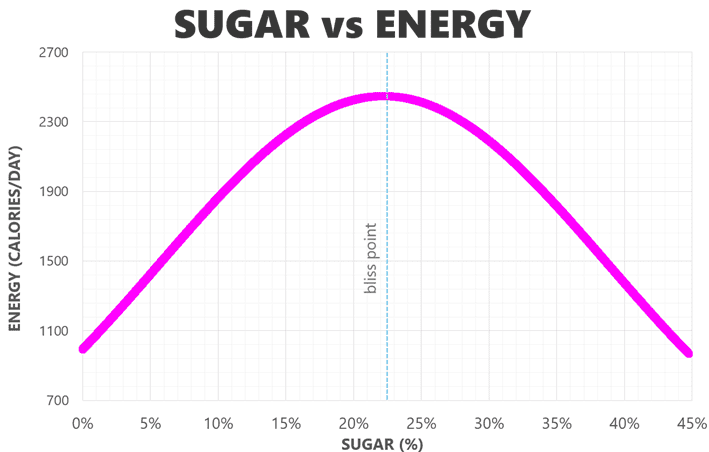 The data reveals a bliss point at around 22% of our daily energy intake. We’ll eat less if our daily food intake contains more or less than this bliss point concentration.